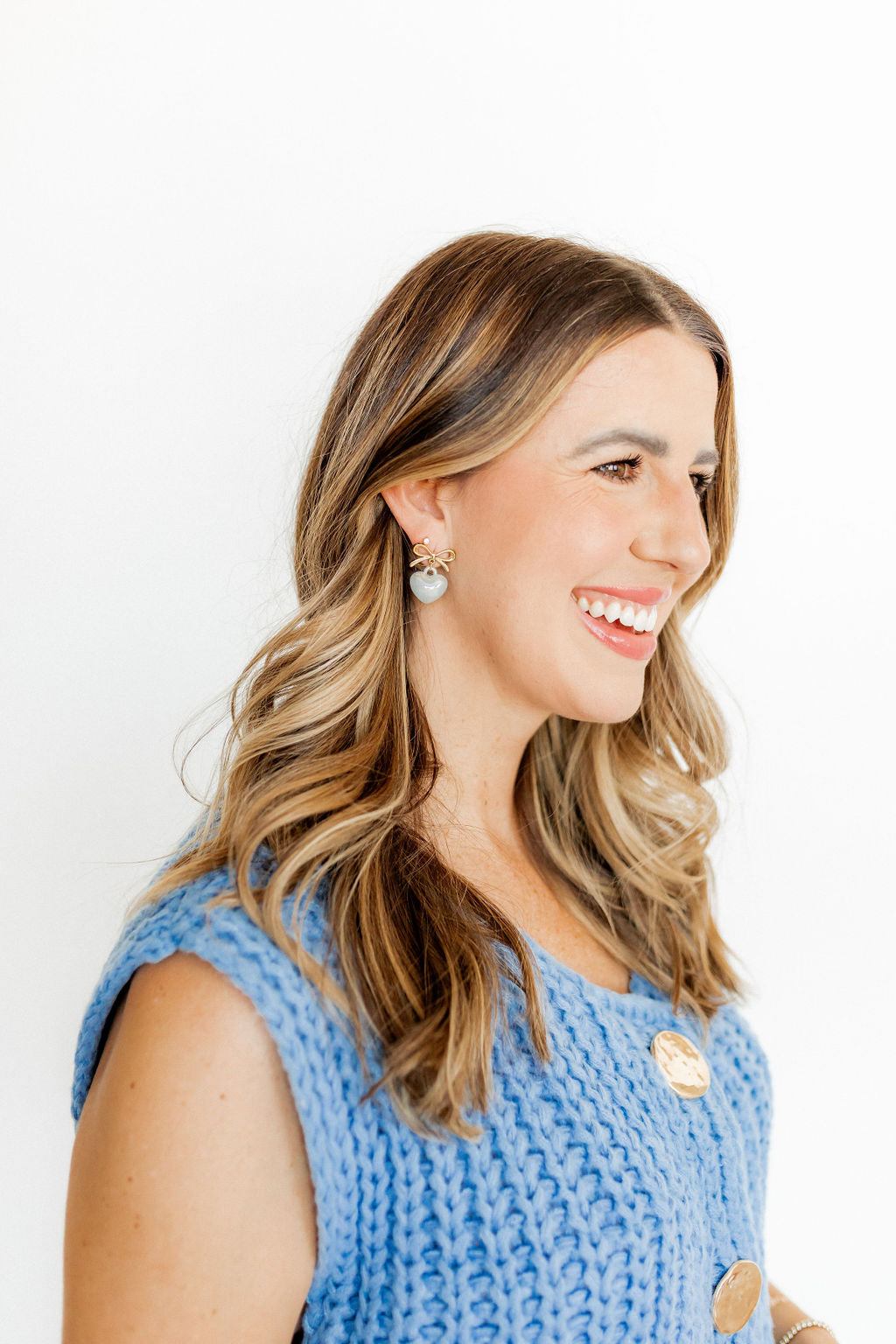 Ruthie Bow with Drop Heart Pearl Earring - Blue