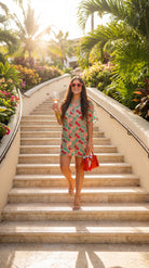 Lulu Short Sleeve Mini Caftan- Precious Coral