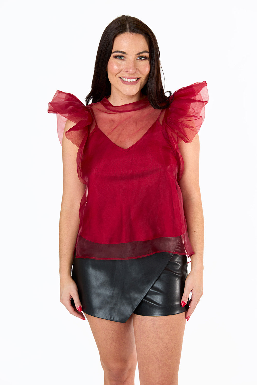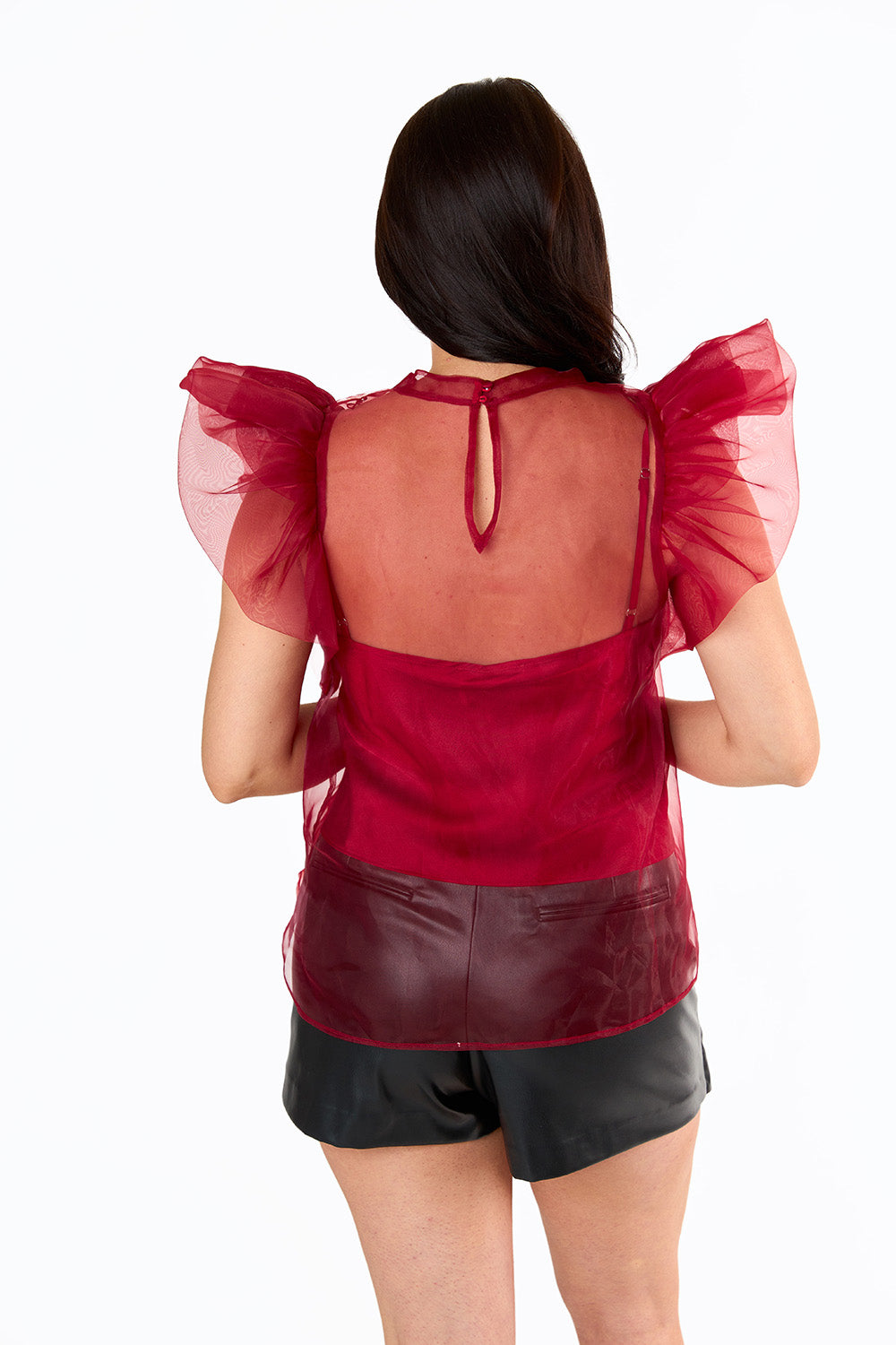 Kaycee Organza Ruffle Sleeve Top - maroon
