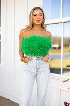Fancy Strapless Feather Crop Top - Green