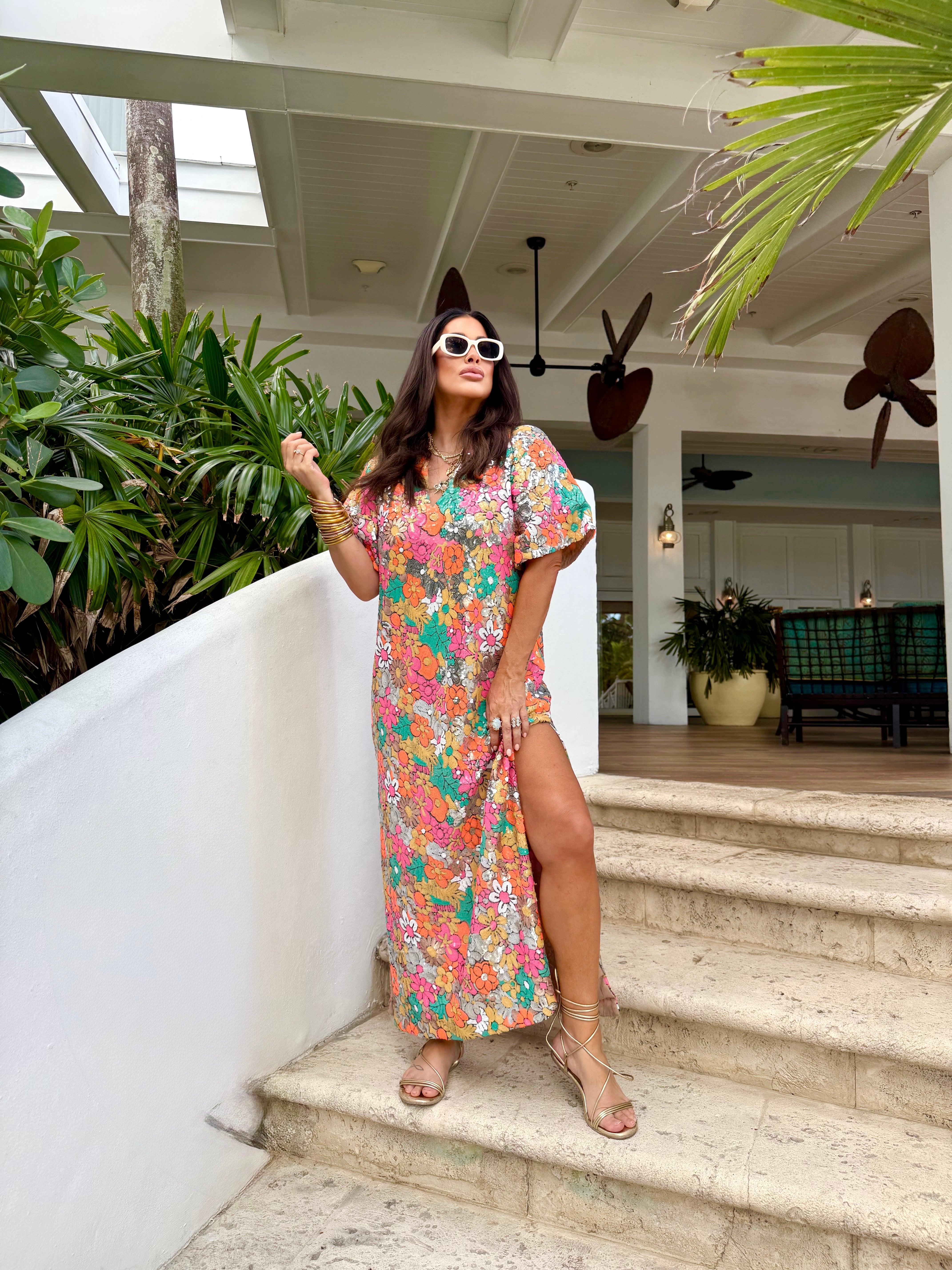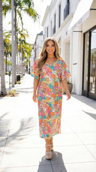 Our Leighton Midi Sequin Dress redefines your style! Her loose fitting silhouette, two slits right below the knees, and her STUNNING sequined pattern makes her a perfect addition to your wardrobe!