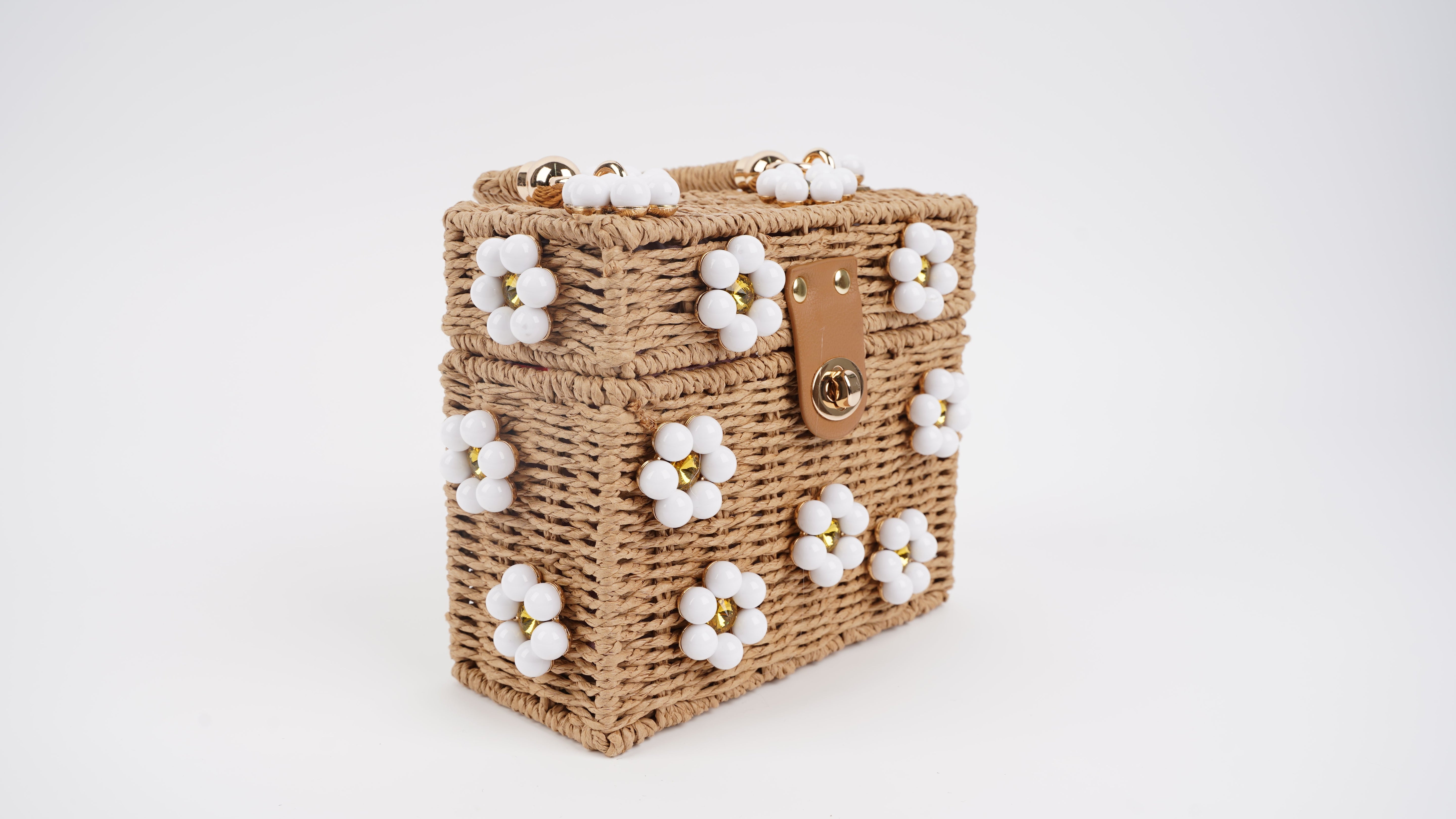 Tan/Khaki Purse + White Daisy with Yellow Rhinestone Center