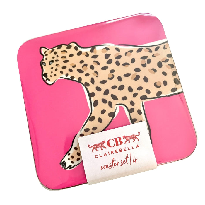 Coaster Set - Tiger Pink Monogrammed