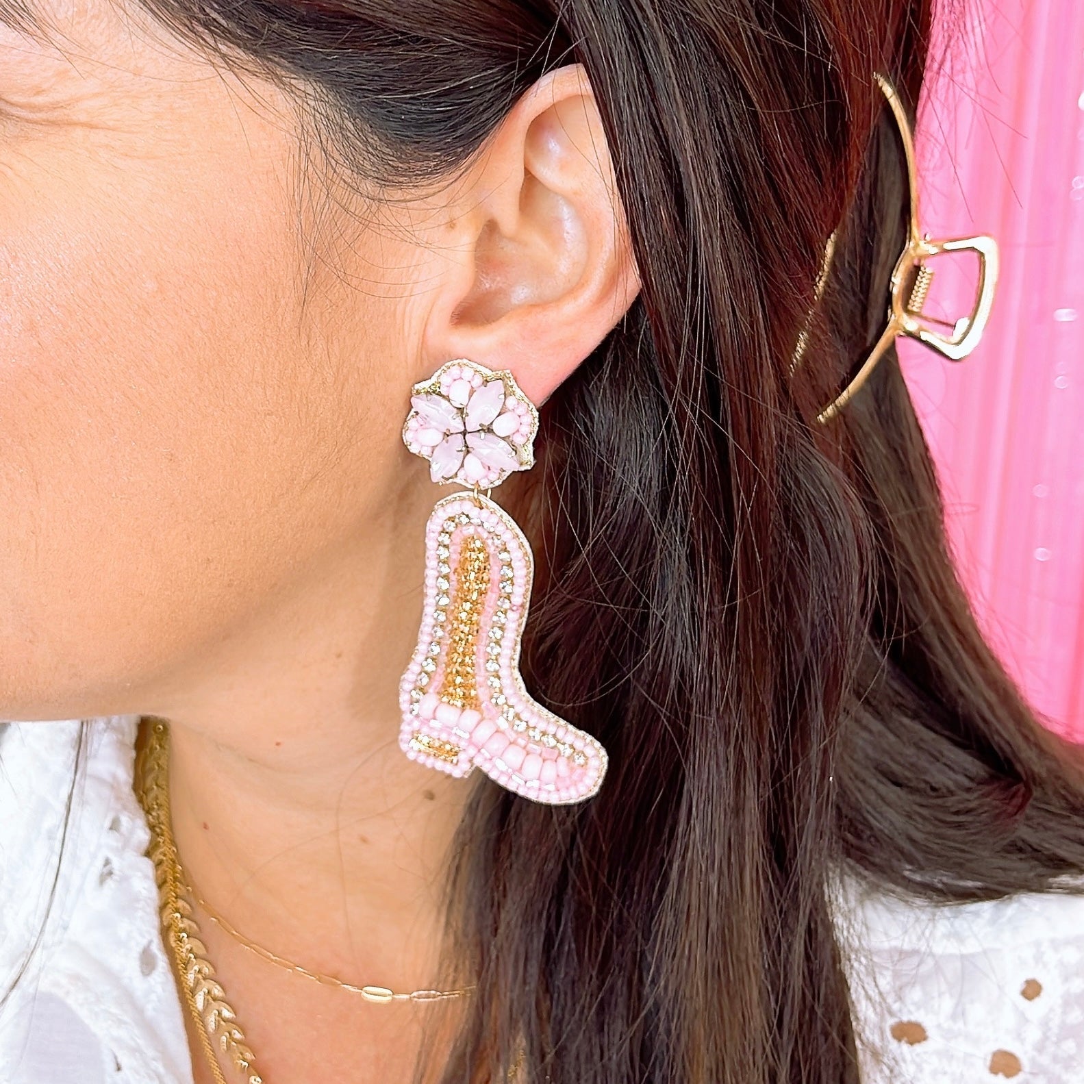 Riding Pink Boots Earrings