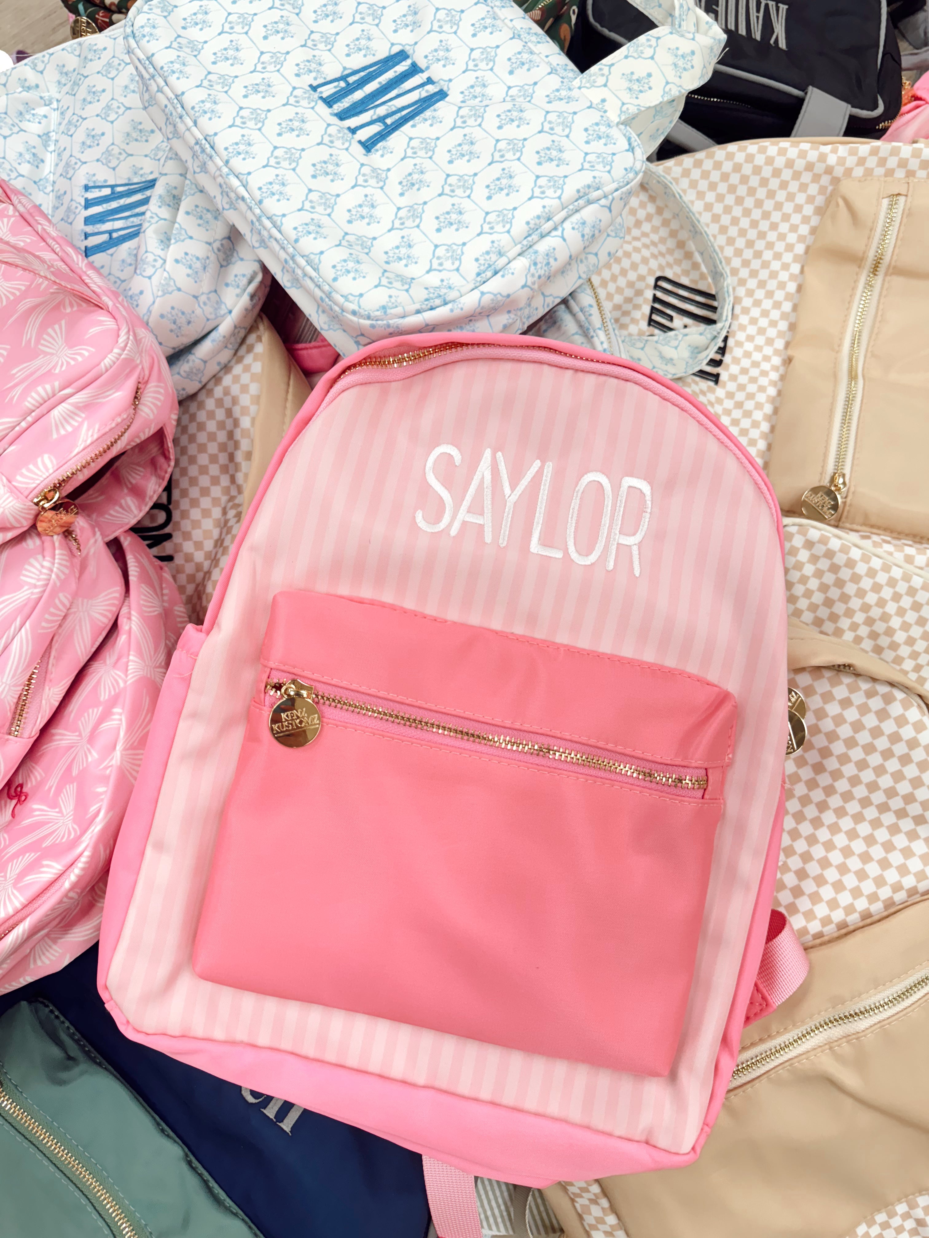 - For all my pink girlies, this backpack is the cutest neutral with stripes!