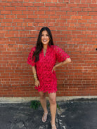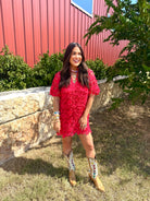 Lulu Short Sleeve Mini Caftan- Chili
