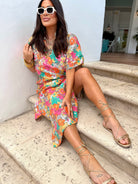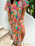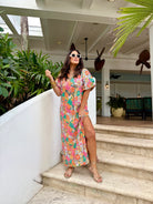 Leighton Coral Cascade Maxi Dress