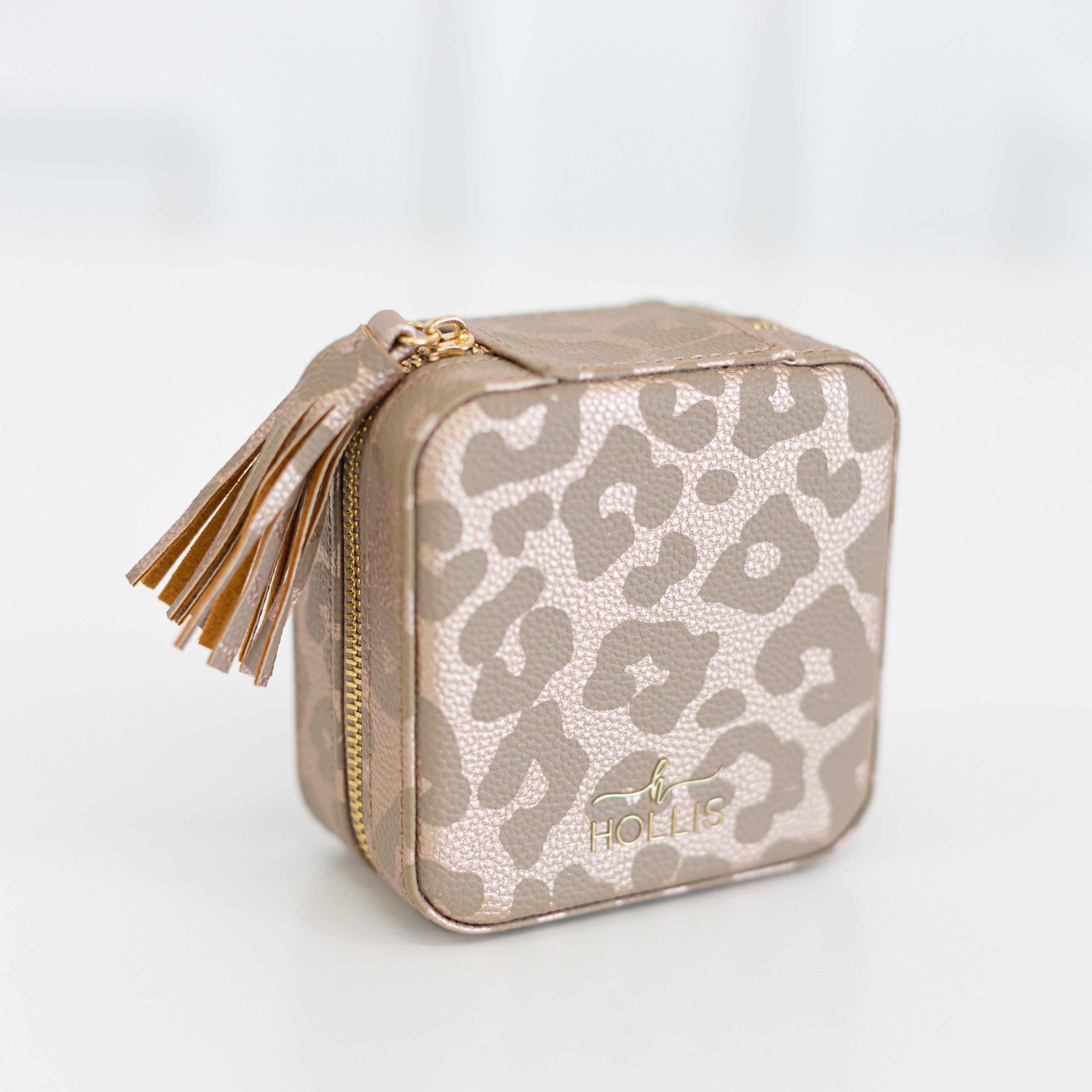 Introducing the Mini Jewelry Organizer, a compact and convenient twist on our original design. Perfect for quick trips when you only need to pack the essentials, this mini version provides a stylish and organized solution for your jewelry. With dimensions of 4"x2"x4", it offers a compact size while still accommodating your favorite pieces. Keep your jewelry protected and easily accessible with this handy travel companion. Upgrade your on-the-go organization with the Mini Jewelry Organizer, a must-have for any jewelry lover.
