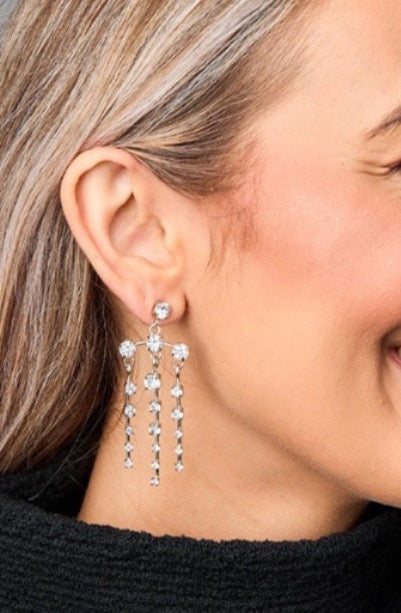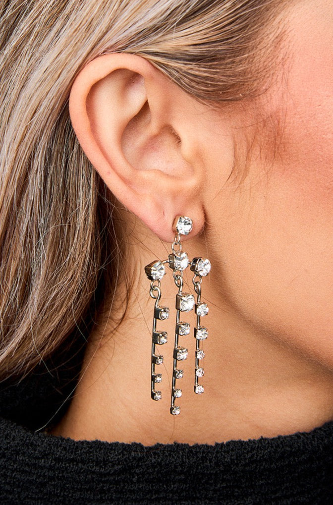 Add some pizzazz to any outfit with these statement earrings! The Dolly Earrings feature 3 columns of diamonds, getting smaller as they go. Dainty yet bold!