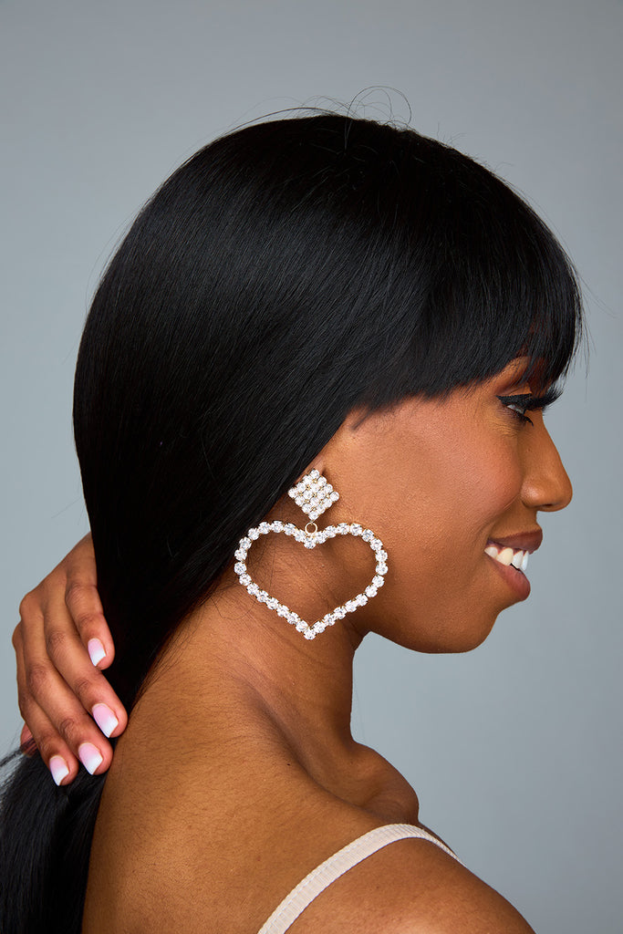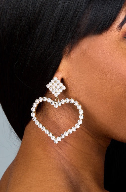 These rhinestone heart shaped earrings compliment any outfit and will be your go-to accessory from brunch to a night out!